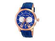 Adee Kaye AK8871 Mens 18 Jewel Automatic and Multi Function Watch-Rose tone-Blue dial
