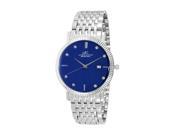 Adee Kaye Mens Swiss Stainless Steel and Crystal Watch - Silver Tone-Blue Dial