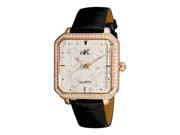 AdeeKaye AK9112 Womens Swarovski Color Crystal Watch-Rose tone-White crystals-Black band